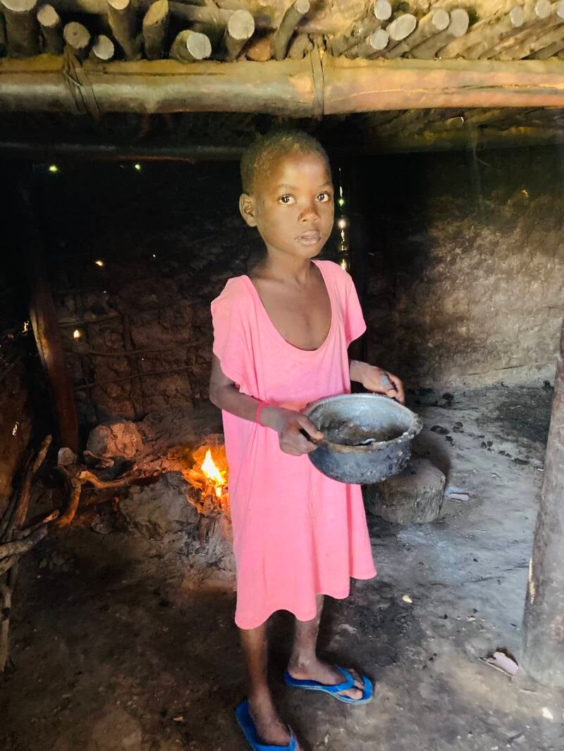 Die Großmutter hat sie bei sich aufgenommen. Als ich die Familie das erste Mal gesehen habe, hatten die Kinder keine Kleidung. Sie hatten Stofffetzen, mit welchen sie ihren Körper bedeckten. Die Kinder essen jeden Tag Ugali. Ein anderes Essen gibt es nicht. Den das Geld reicht gerade so für Maismehl. In einem alten Topf wird Ugali gekocht und es fehlt an allem.