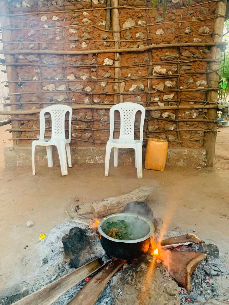 Die Menschen kochen im Freien auf einer Feuerstelle oder auf einem Grill. Auch in den Hütten befindet sich eine kleine Küche mit Kochstelle, welche gerade in der Regenzeit häufig genutzt wird. Die meisten Häuser/Hütten bestehen aus Lehm, Steinen oder Blech.