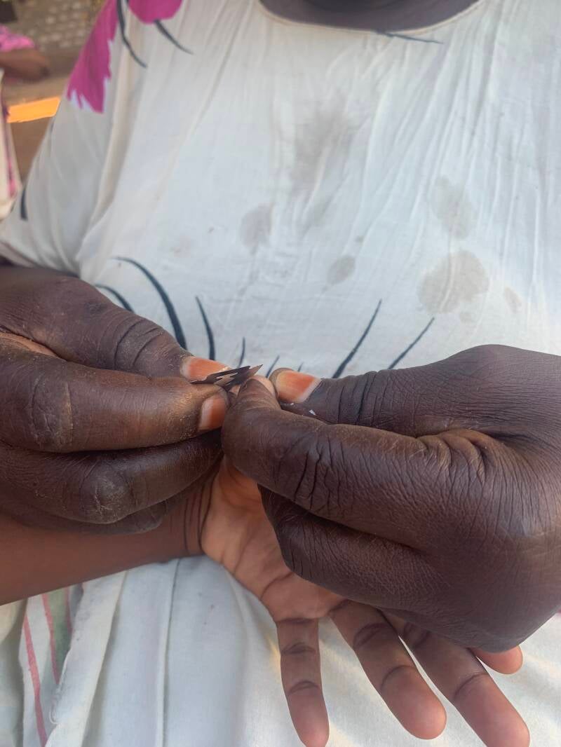 Für mich ist es jedes Mal eine große Überwindung, wenn ich die kleinen Finger sehen und ich die ganze Zeit im Kopf diese scharfe Klinge habe. Aber hier ist es etwas ganz Normales und es passiert auch nichts.