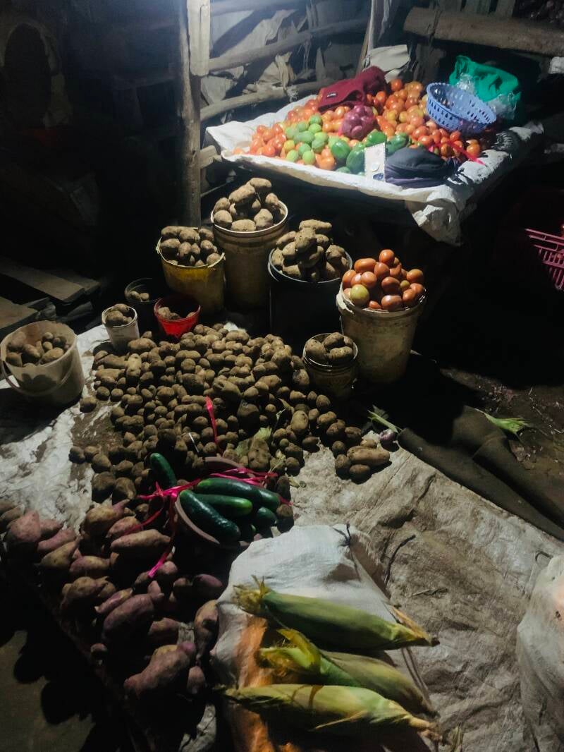 Wir brauchten heute nur etwas Obst sowie Gemüse und wurden fündig. Die Freude war groß als wir noch viele Kinder und Nachbarn getroffen haben.